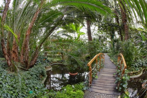 Dużym zainteresowaniem cieszą się również palmy z rodzajów latania i niebochronka, które podobnie jak 15 metrowe araukarie i brachychiton pamiętają jeszcze „starą Palmiarnię”. Goście mogą odpocząć w altance i na ciekawie wkomponowanych w zieleń ławeczkach. W środkowej części pawilonu w oczkach wodnych rosną papirusy i pandany, a cichy szum kaskady pozwala na chwilę refleksji.